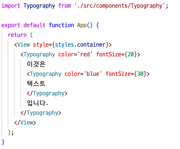 - color는 문자열, fontSize는 숫자, children은 문자또는 엘리먼트 가능