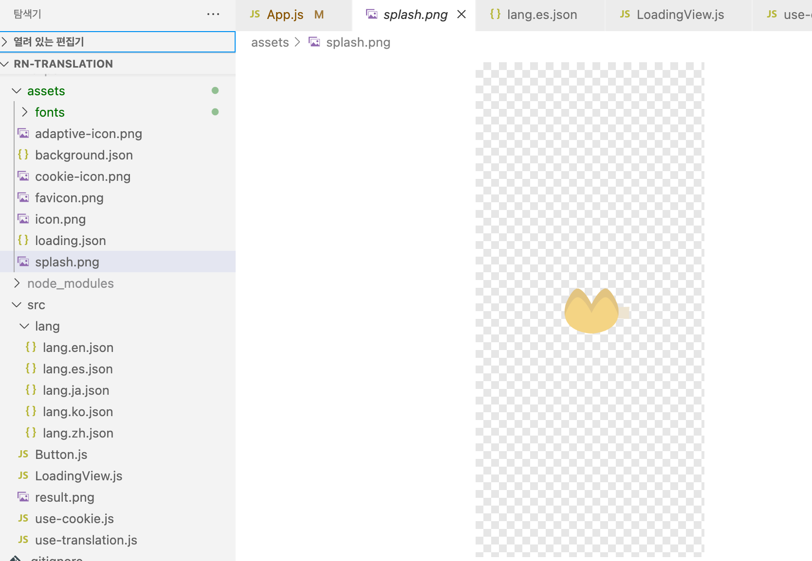 - assets 폴더내 splash 이미지를 대체