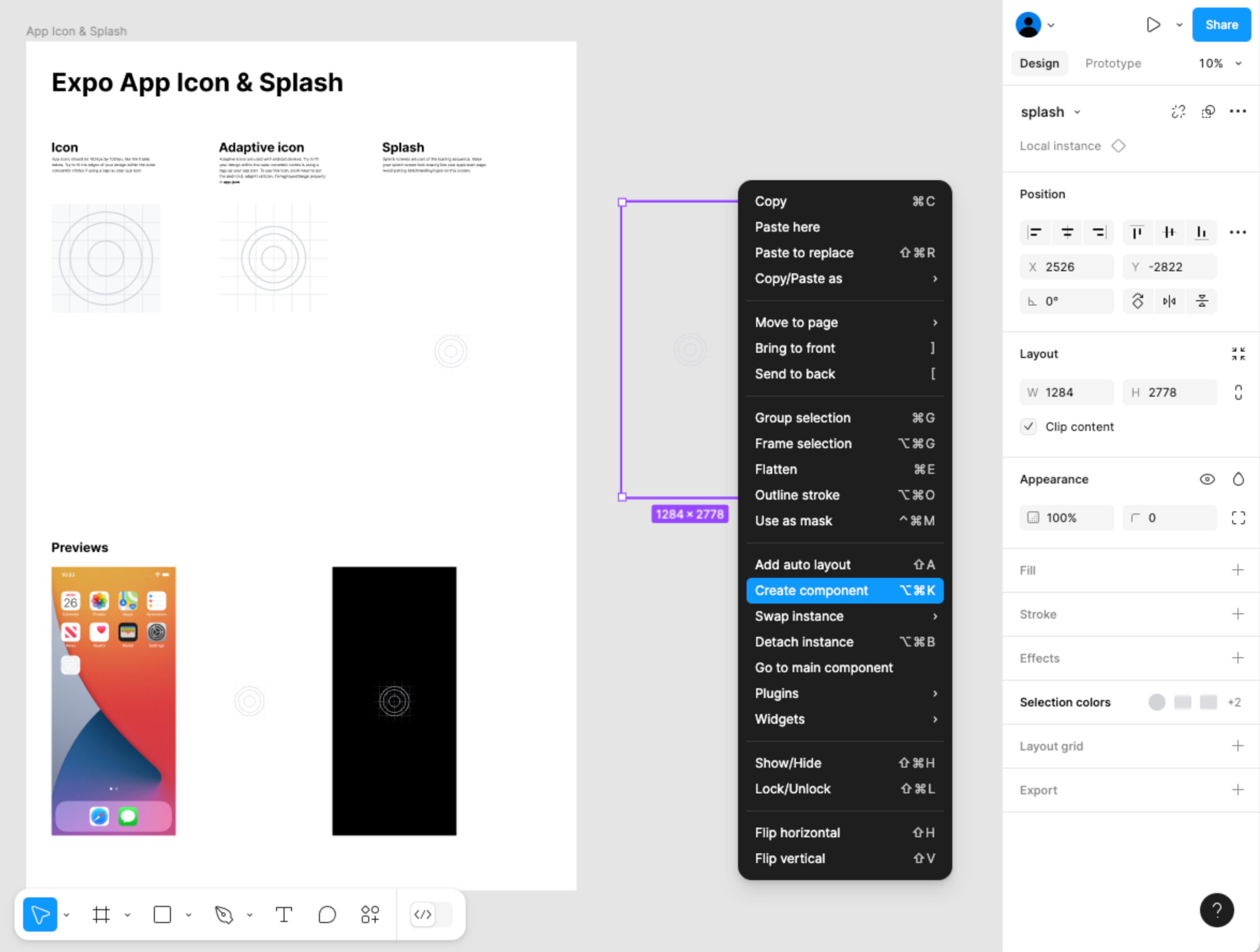 - 우측의 메뉴에서 export 하여 png 이미지를 받아 splash.png로 파일명을 바꾸고