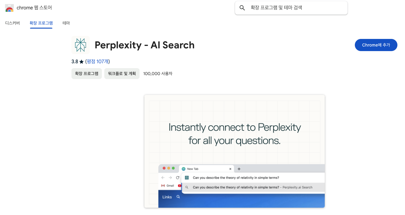 - Perplexity - AI Search 확장프로그램 설치하면 기본 주소창에서 바로 검색 가능