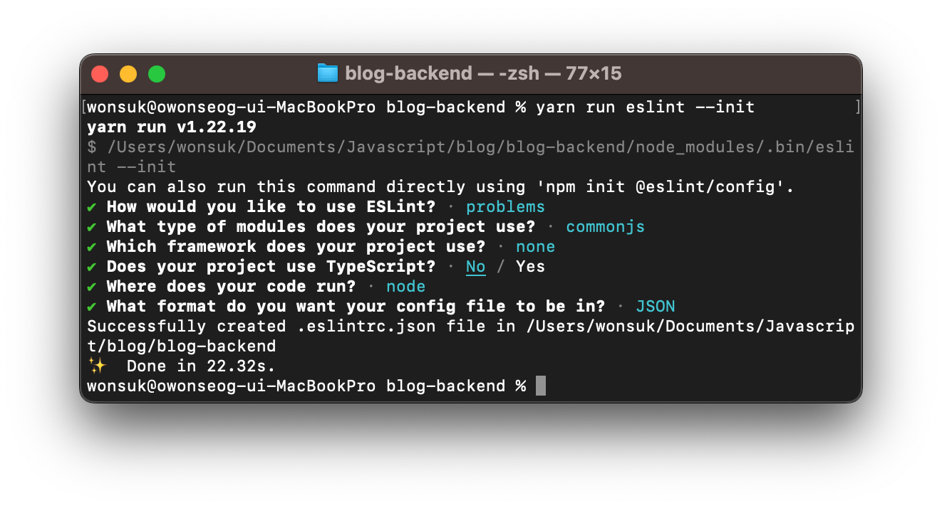 서버 파일 생성전에 ESLint 와 Prettier 를 프로젝트에 적용