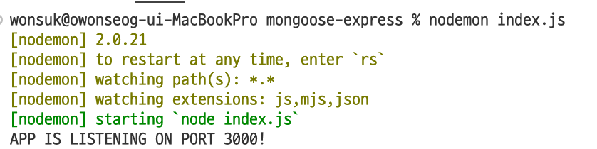 이제 mongoose 로 데이터베이스를 연결합니다.