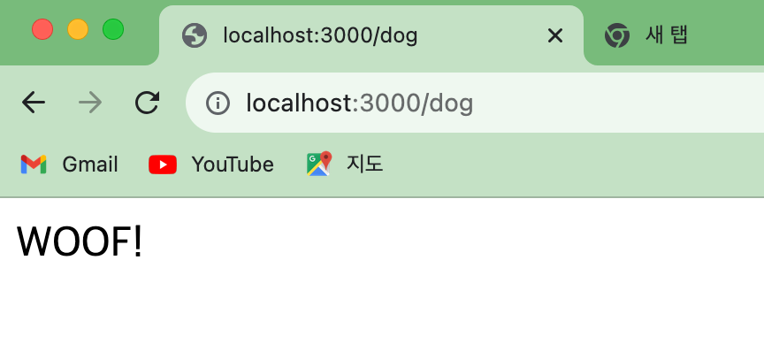 app.get을 이용하여 간단한 경로를 추가하고, 브라우저에서 정상 표출되는지 확인해봅니다.
