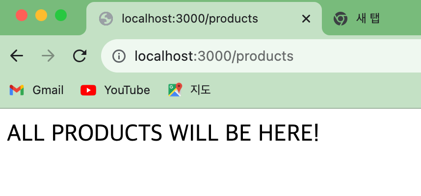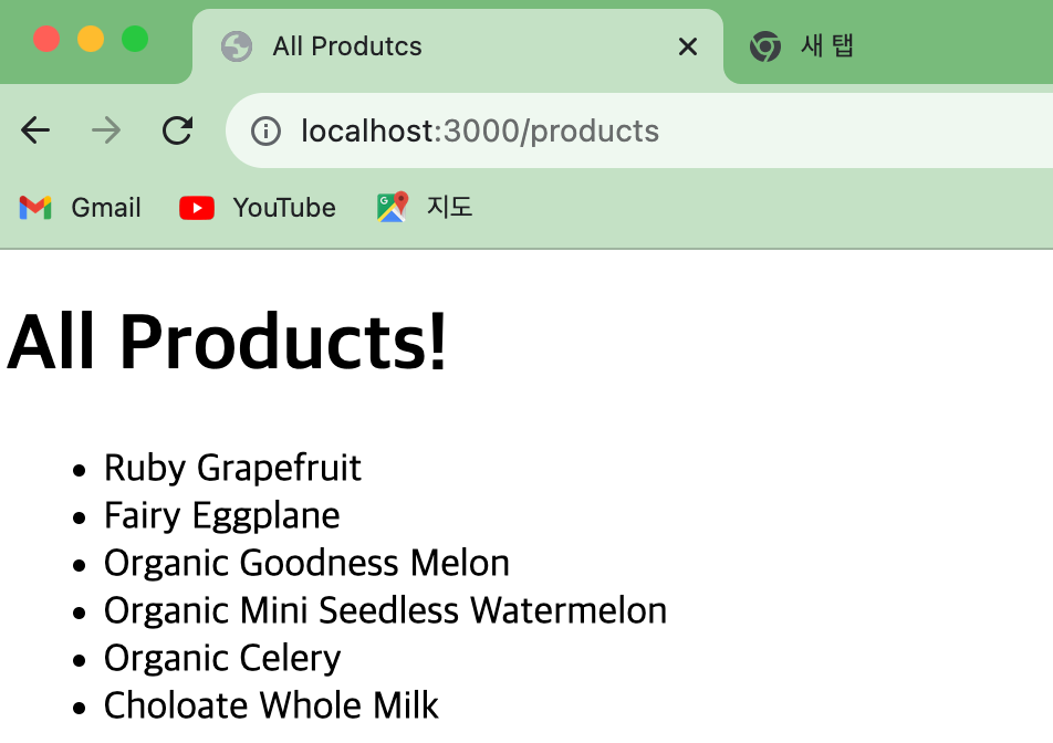 웹페이지 localhost:3000/products 접속하면 정상 표출되는 것을 볼 수 있습니다.