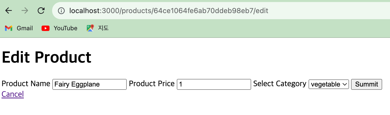 edit.ejs 에서 동적으로 불러오는 product._id에 저장된 카테고리가 보여주도록 만들어 봅니다.