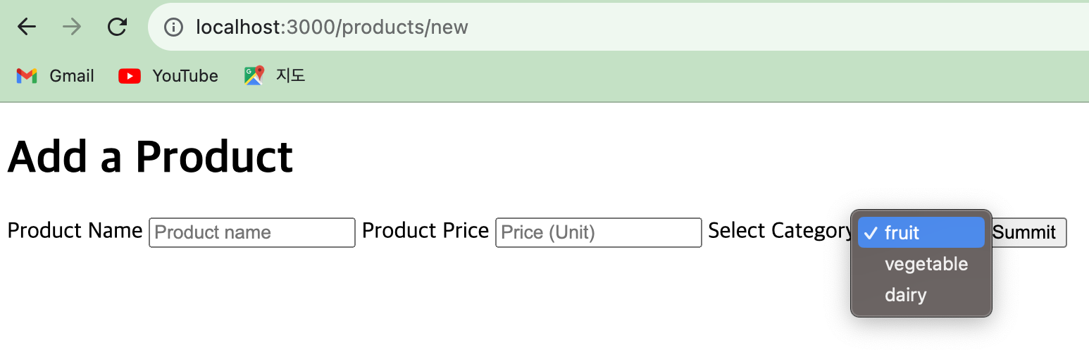 new.ejs에서와 같이 for문으로 카테고리 데이터를 비교하여 저장한 카테고리에 맞는 카테고리 목록에서 "selected" 속성 정보가 표출되도록 삼항식 비교를 사용합니다.