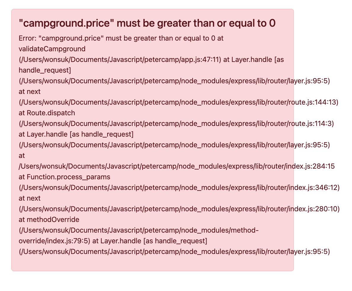 price 최소값으로 0 이상 설정하였는데 -2 를 입력하니 0 이상 값을 입력하라는 에러 화면이 표출됩니다.
