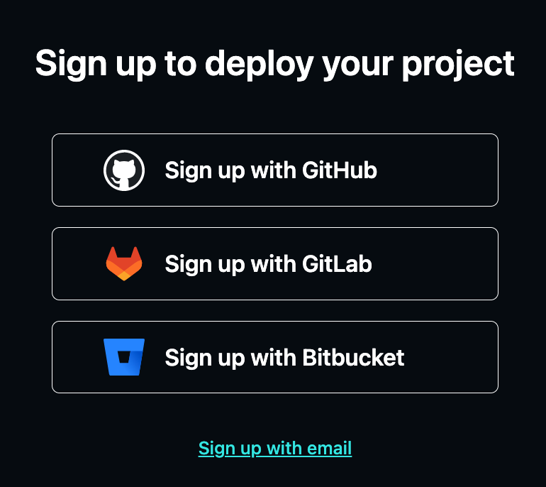 netlify 사이트에서 가입할 때 gitub, gitlab, bitbucket 으로 가입 가능합니다.