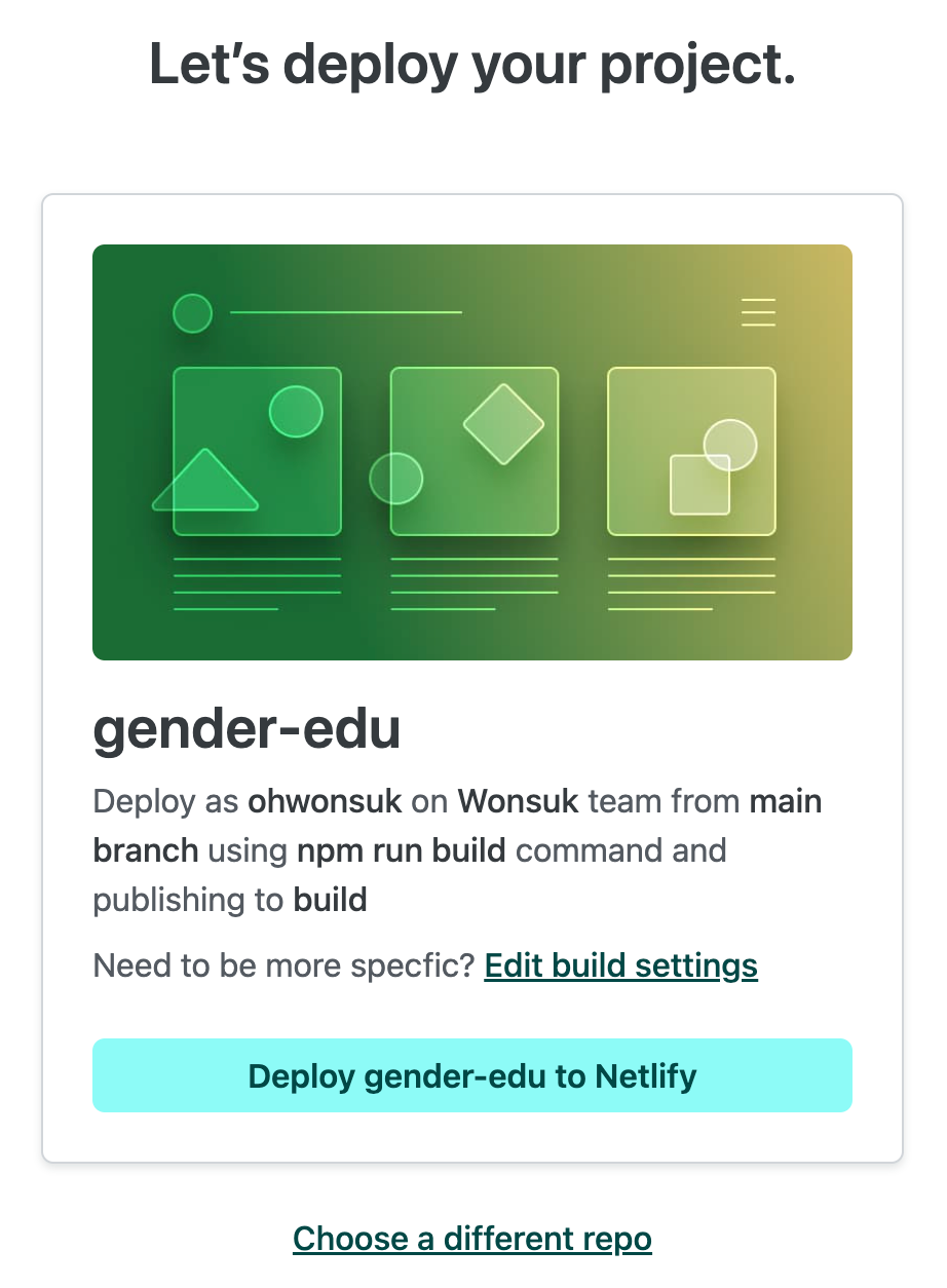 - netlify - https://프로젝트명.netlify.app 으로 구성 : 임의로 생성된 프로젝트명 대신 사용자가 임의 변경 가능