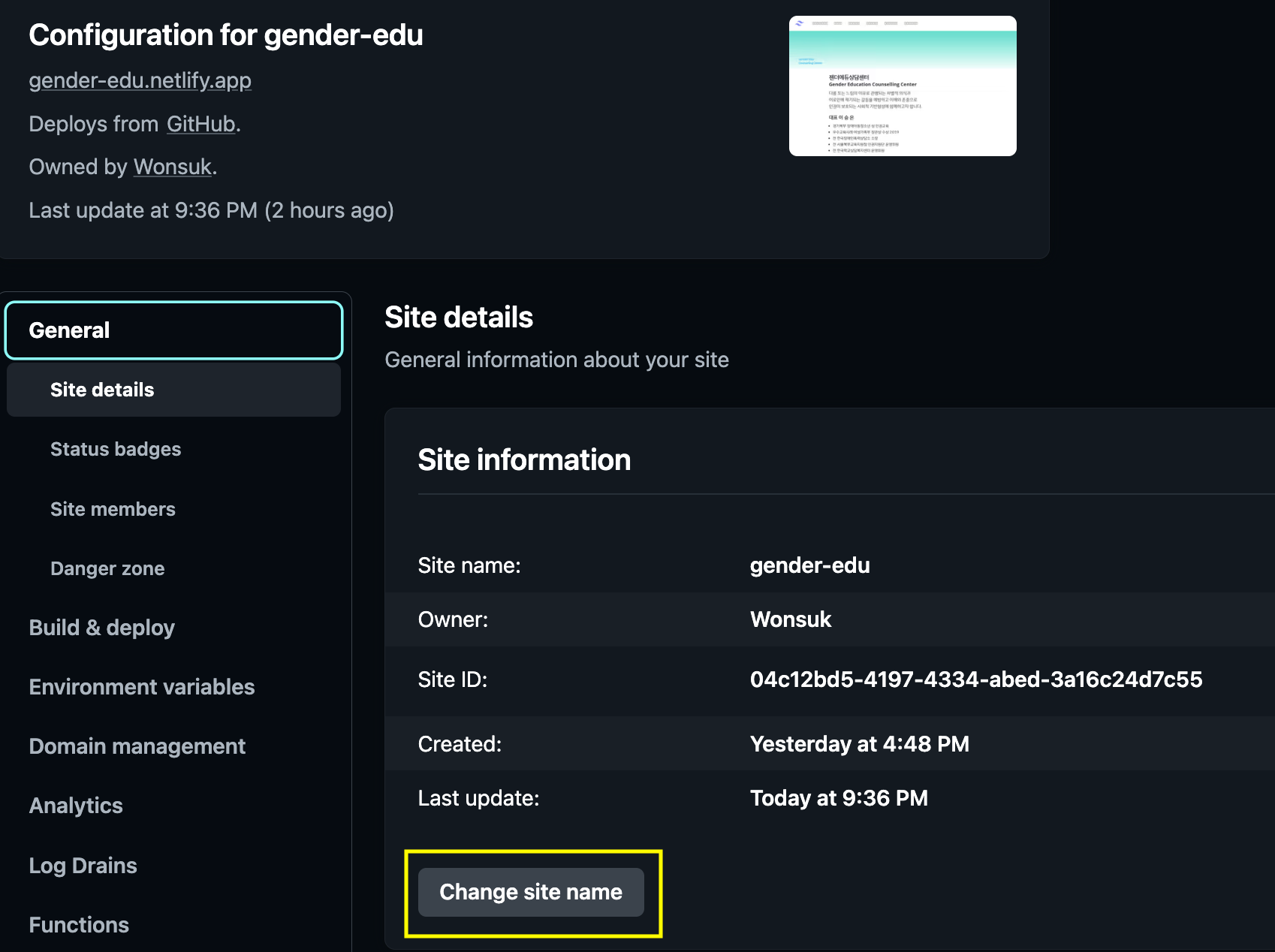 배포가 완료되면 Netlify에서 임의로 생성한 프로젝트명을 보여줍니다.