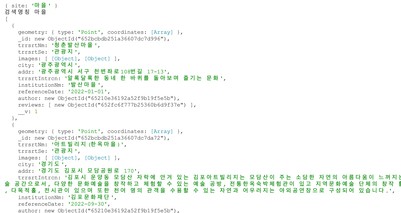 (예시: 결과값을 campgrounds 배열 객체로 저장)