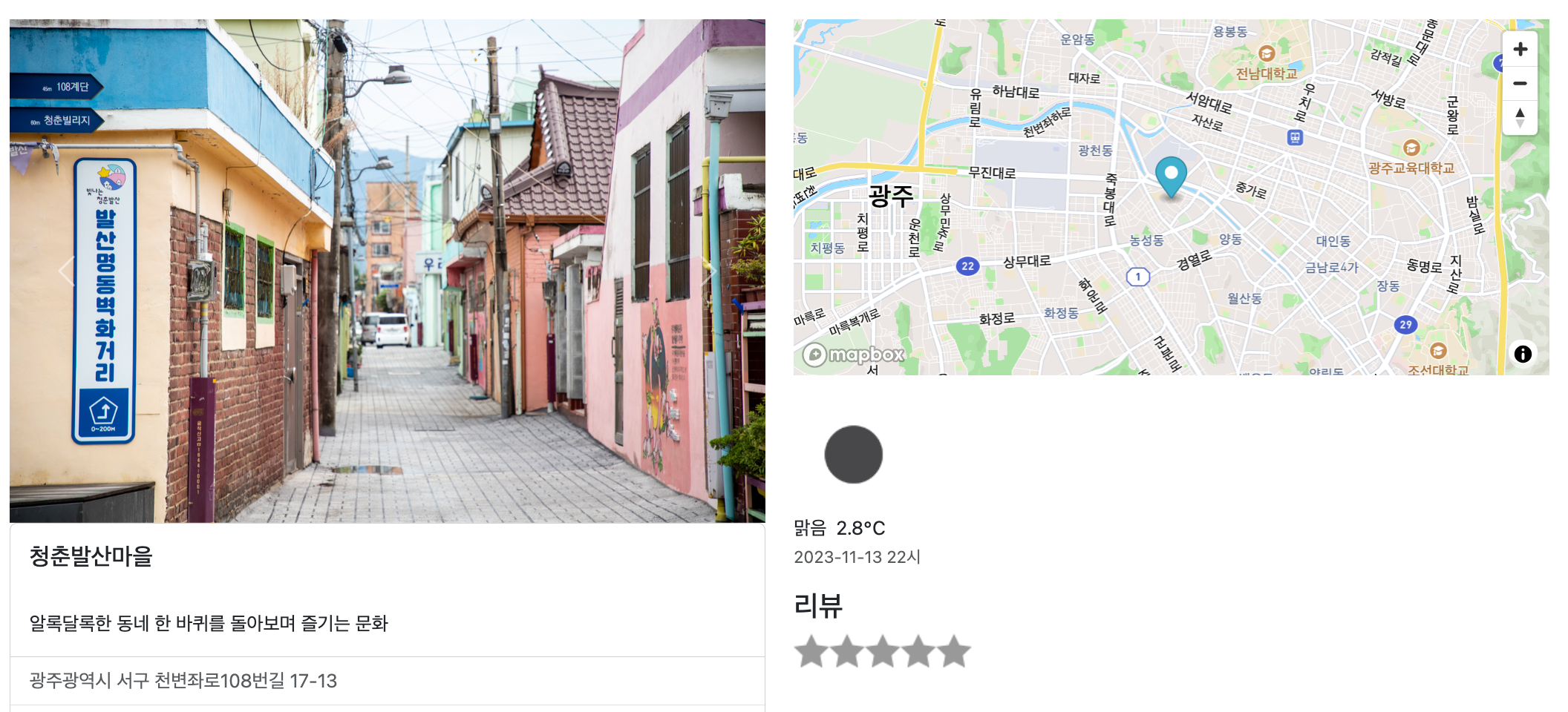 이전 블로그에서 Mapbox 기본 사용법과 클러스터맵 사용예시를 보았습니다. 이번에는 POI(Point of Interrest) 상세정보 표출시 사용하는 마커가 있는 지도를 어떻게 설정하면 되는지 알아 보겠습니다.