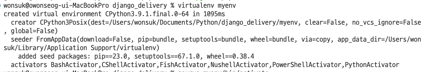 - 터미널에서 $virtualenv myenv (myenv는 가상환경 이름) 실행