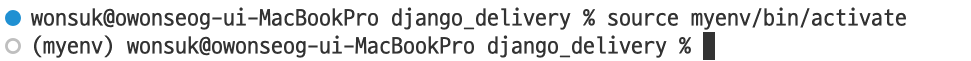 - 가상환경 활성화 하기 $source myenv/bin/activate 실행
