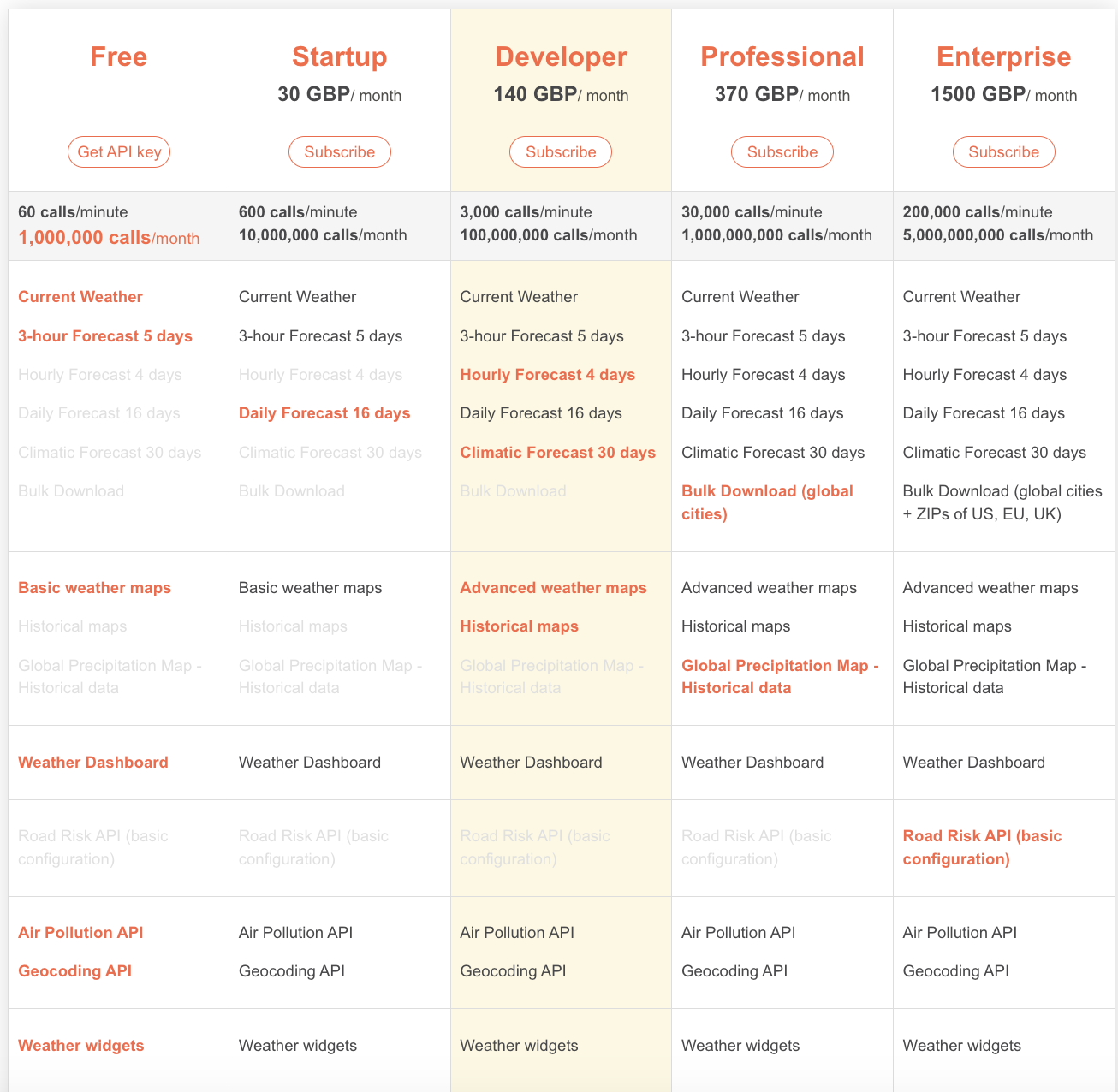 - One Call 3.0 버젼은 다음과 같은 가격 정책을 제공하며 별도 가입신청 필요