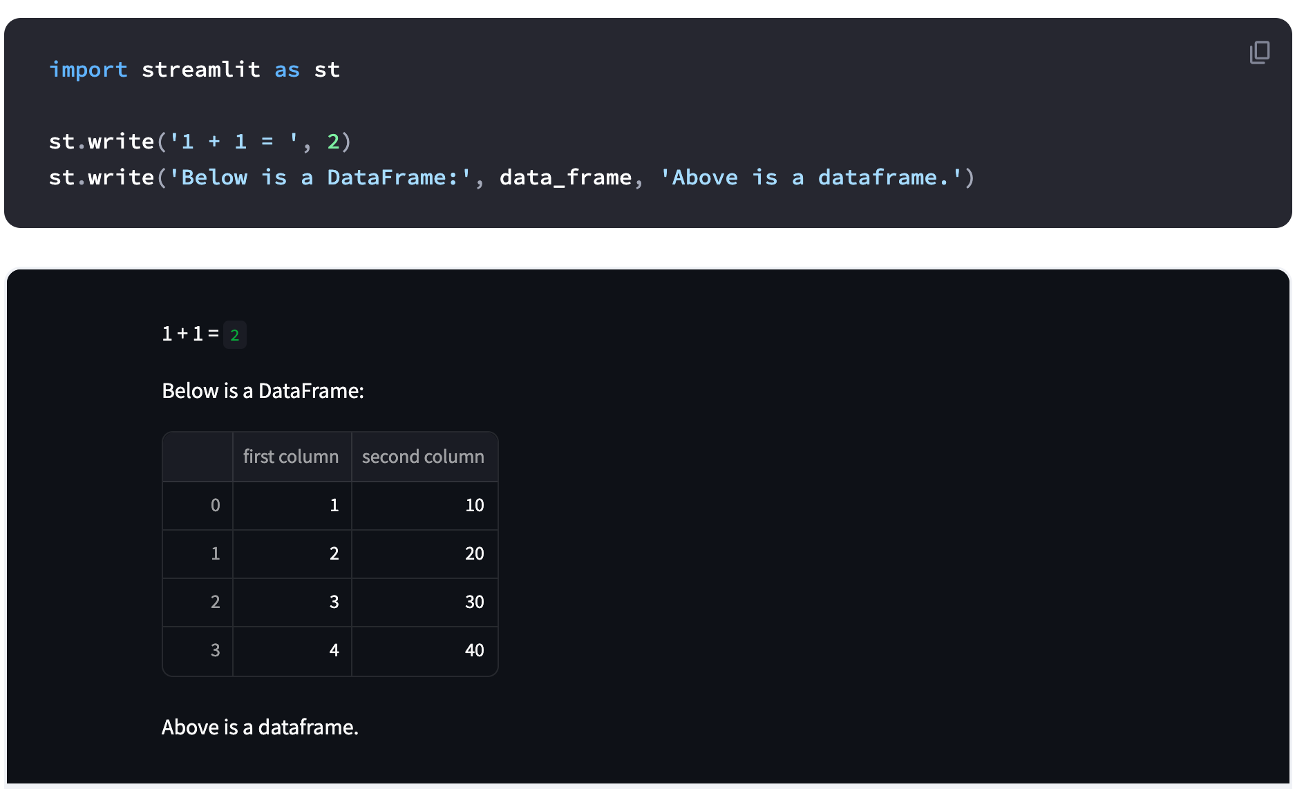 이와 같이 st.write 는 활용도가 높은 라이브러리 입니다.
