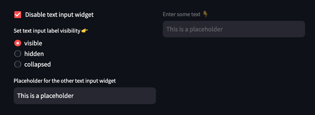 st.text_input(label, value="", max_chars=None, key=None, type="default", help=None, autocomplete=None, on_change=None, args=None, kwargs=None, *, placeholder=None, disabled=False, label_visibility="visible")