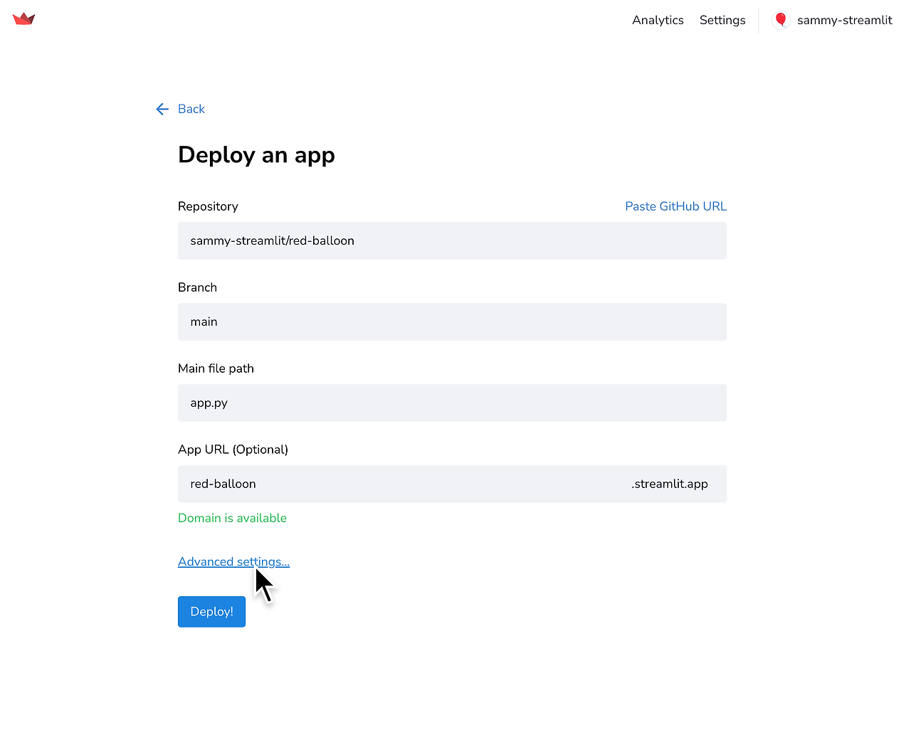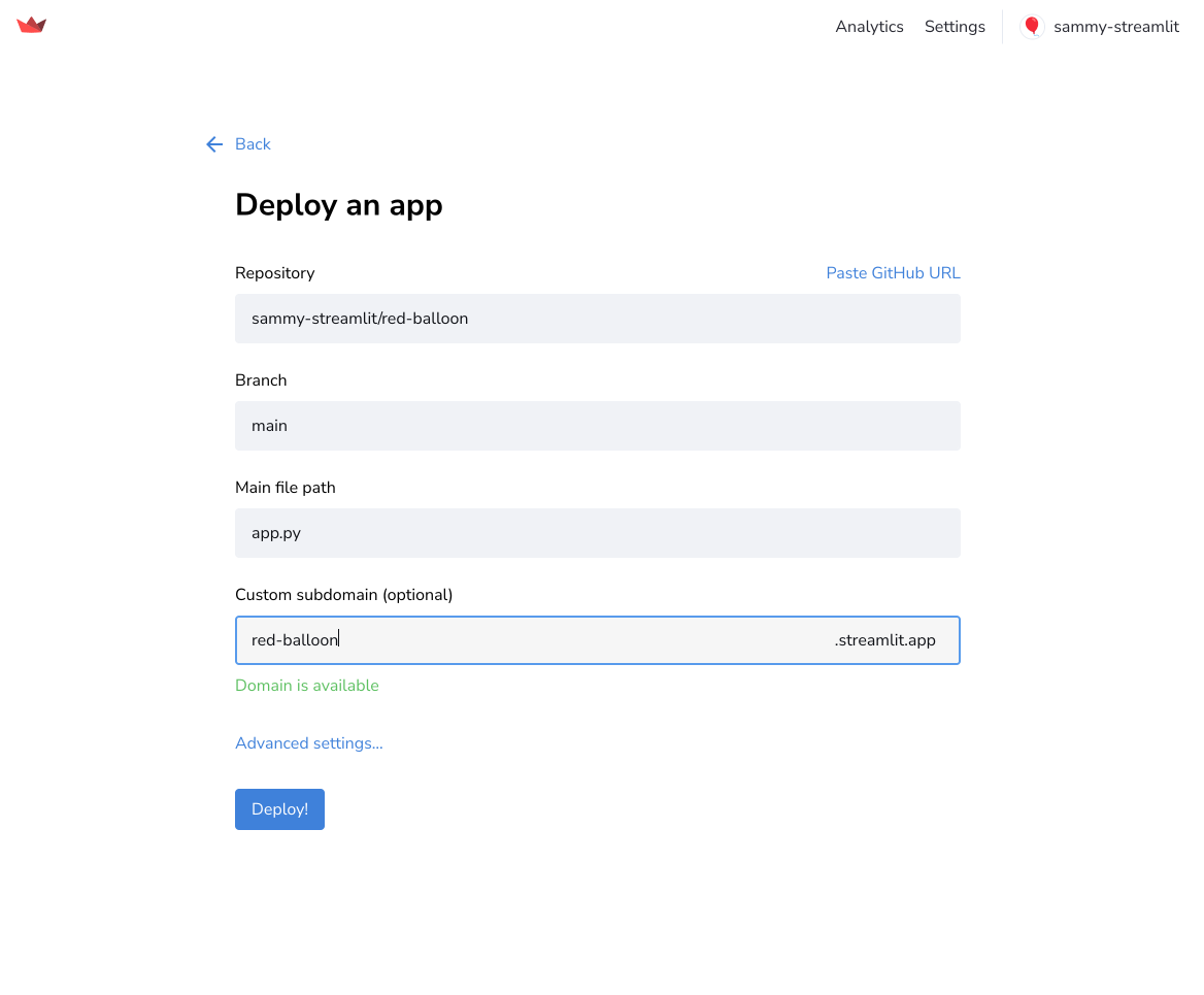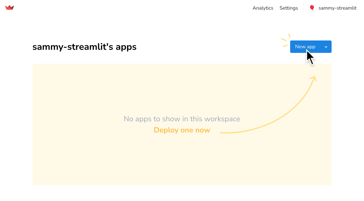 - https://share.streamlit.io/ 이동시 내 계정의 앱관리 화면으로 이동
