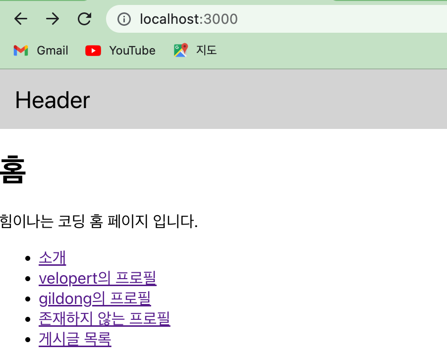 이것을 활용하여 Home 컴포넌트가 사용된 Route 컴포넌트를 다음과 같이 변경해봅니다.
