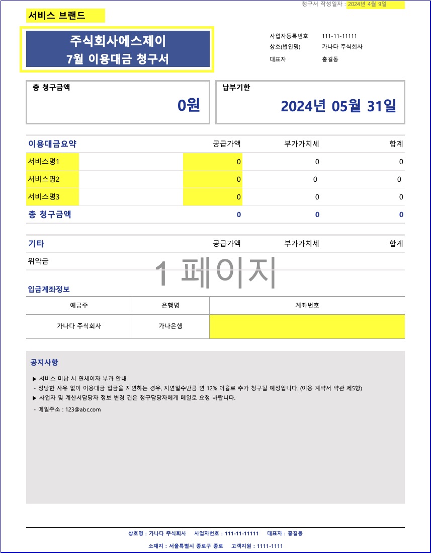 - 기본 청구서 양식 엑셀파일 만들기